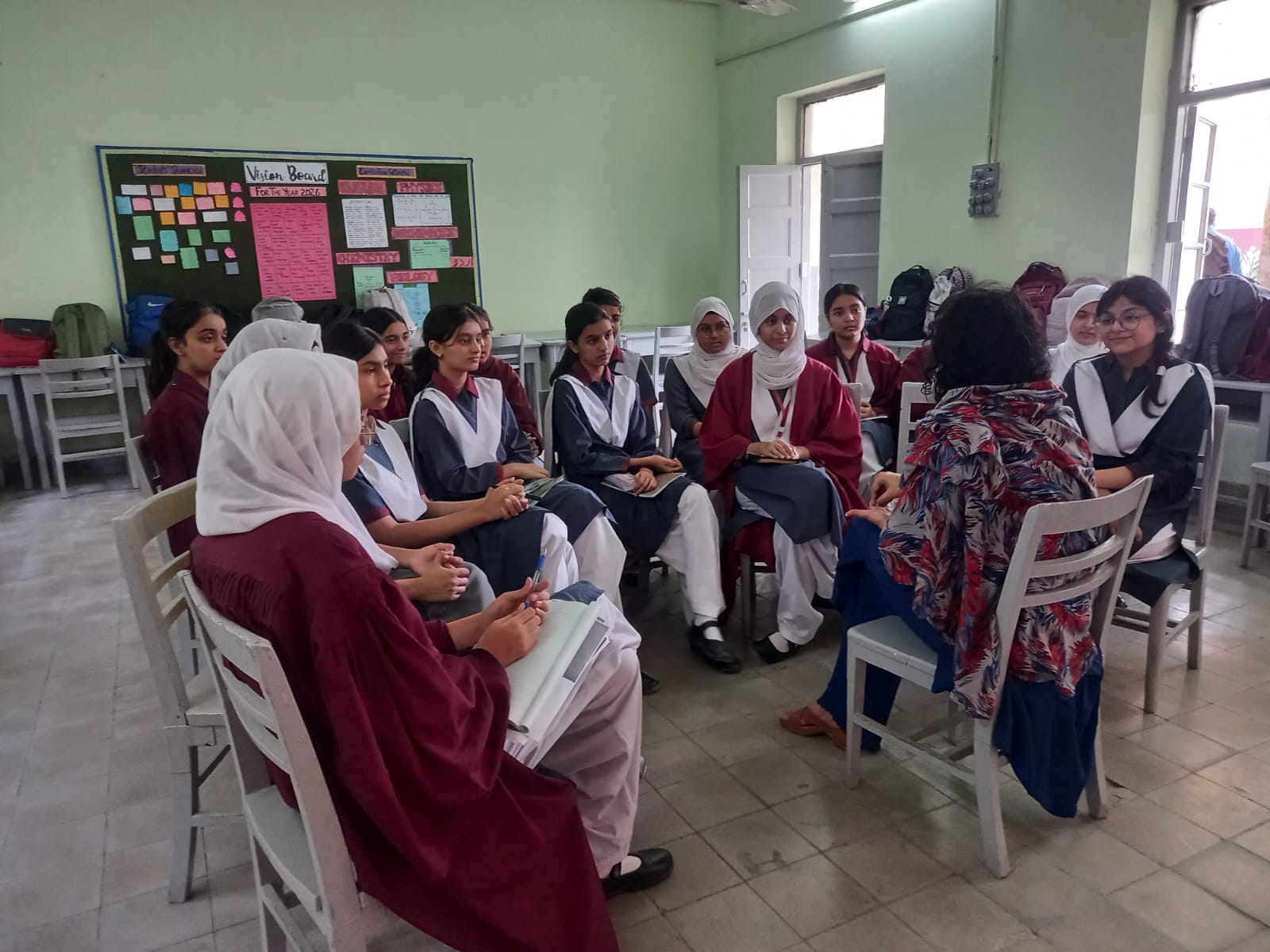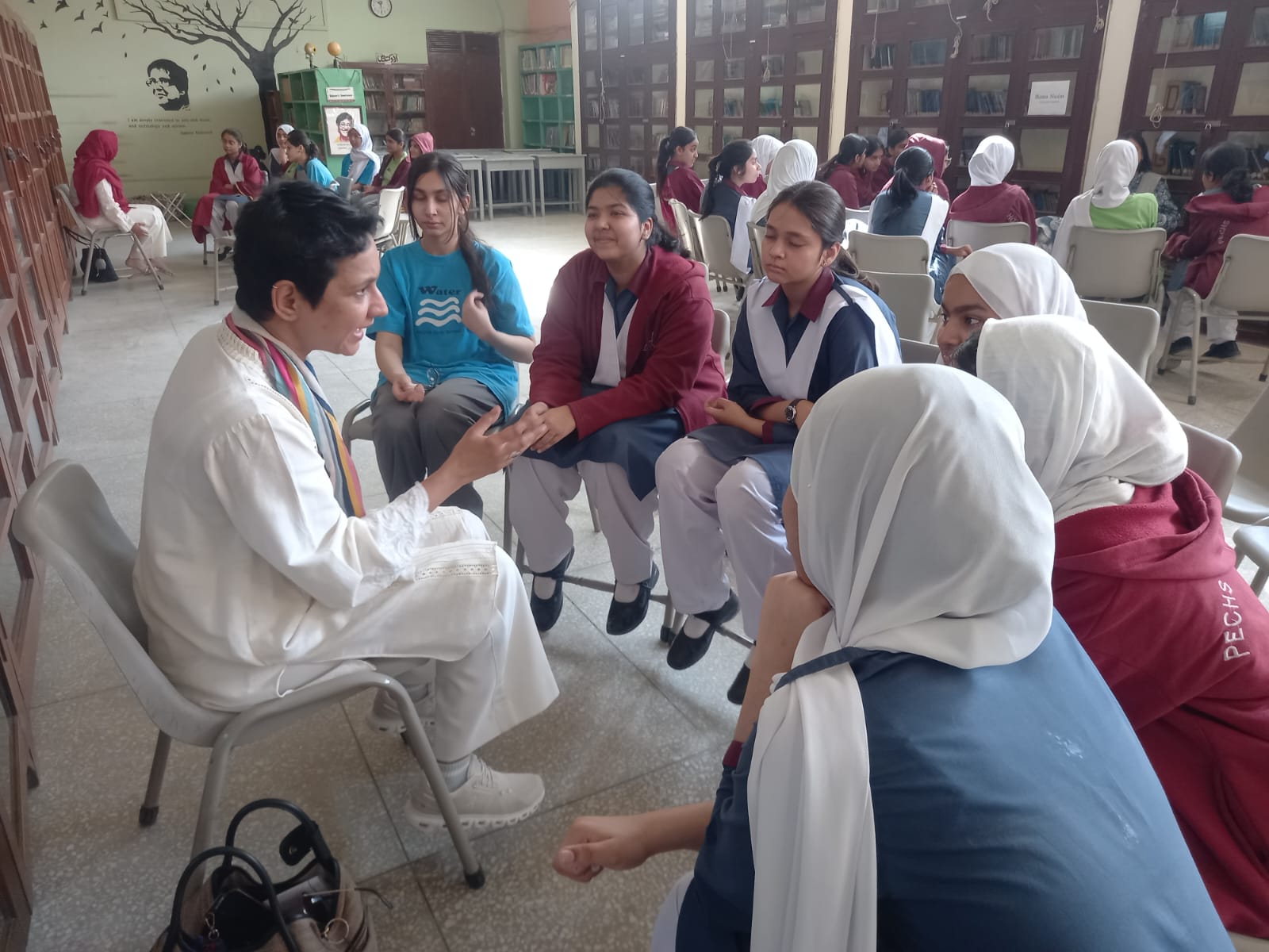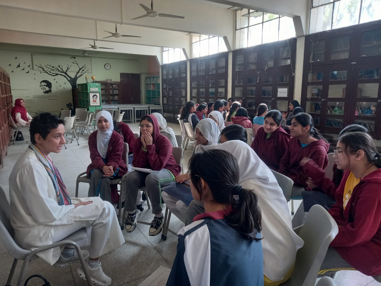 A total of 102 students participated in the event. The sessions were conducted at various stations: MPR 1, Faiz Library and classrooms 10B and 10C, where nine professionals spoke to students in small interest groups. We had four rotation sessions, allowing each student to meet four different professionals of their own choice.