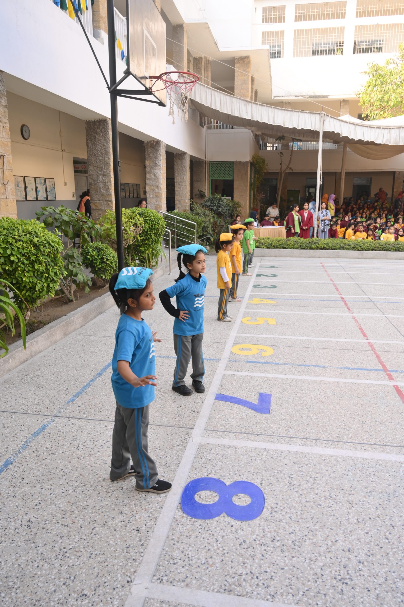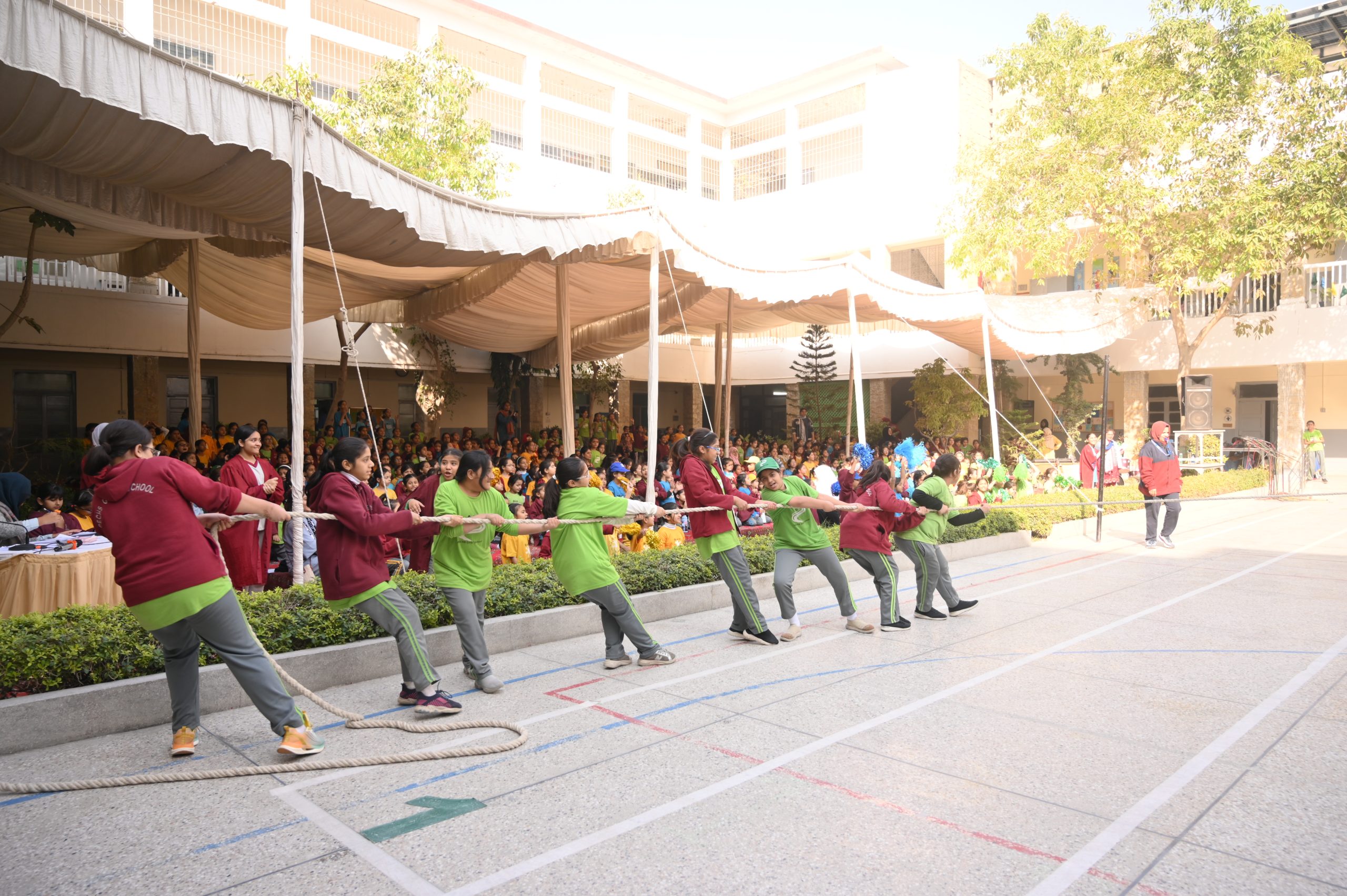 Throughout the Primary Section programme, students of Air, Water, and Sun Houses cheered passionately, chanting slogans, and motivating their teammates with infectious energy. The House Coordinators played a pivotal role in guiding and energizing their houses, instilling a spirit of fair play and healthy competition. The Teachers’ Bean Bag Race added a playful twist, drawing hearty applause from students seated in the garden area.